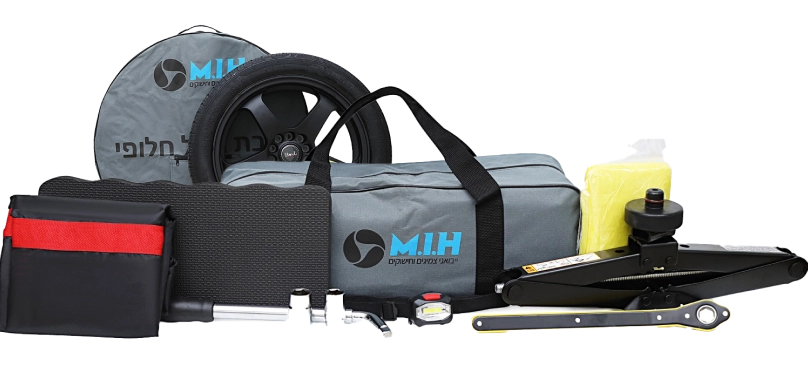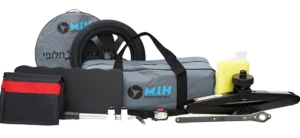 הערכה כוללת: תיק וכפפות, פנס ראש, כיסוי לגלגל שהוחלף, פד לברכיים, מעיל גשם.
